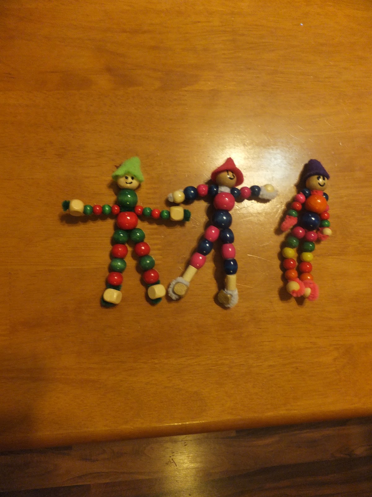 We also made some bead elfs that have been on my must do list for the last couple of years. The girls had fun picking colors and putting faces on them. Emily was working on homework and couldn't find her elf but they all made them.